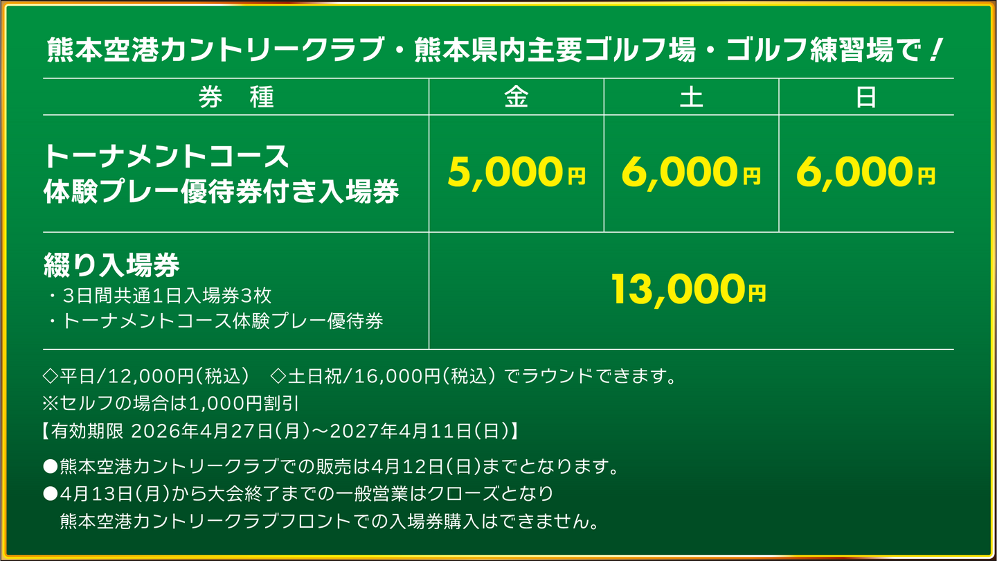 【③・④ 取扱い窓口:熊本空港カントリークラブ、熊本県内主要ゴルフ場・ゴルフ練習場】